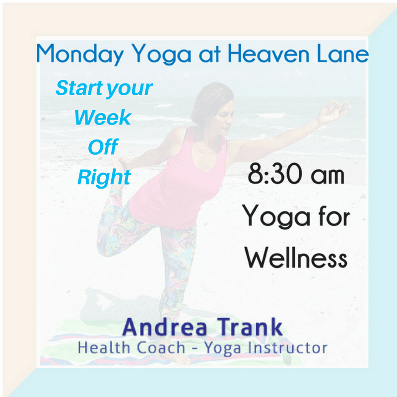 I teach yoga from my home studio every Monday, Wednesday, and Friday. Start-yourWeek-Off-Right