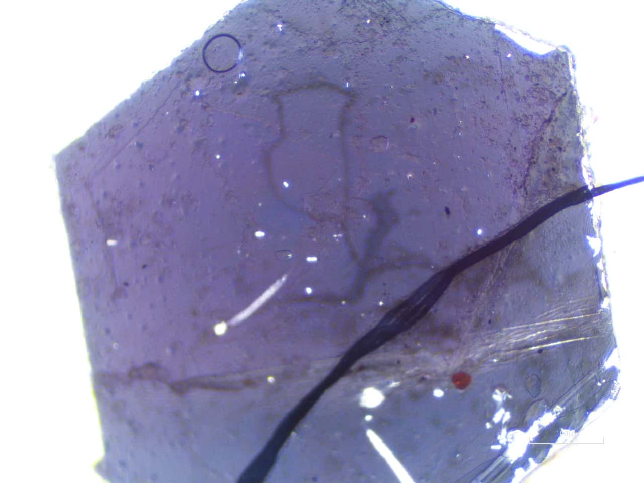 Hexagon with fibers which exited through unbroken skin on the Morgellons Patient