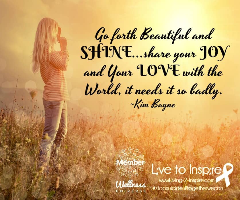 Go forth Beautiful and SHINE...share your JOY and Your LOVE with the World, it needs it so badly.